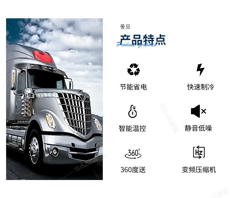 SA-D8000车载顶置驻车空调主要用于卡车、货车等大车的制冷。一分钟快速制冷高效节能,白天可用4-6小时晚上6-8小时。
