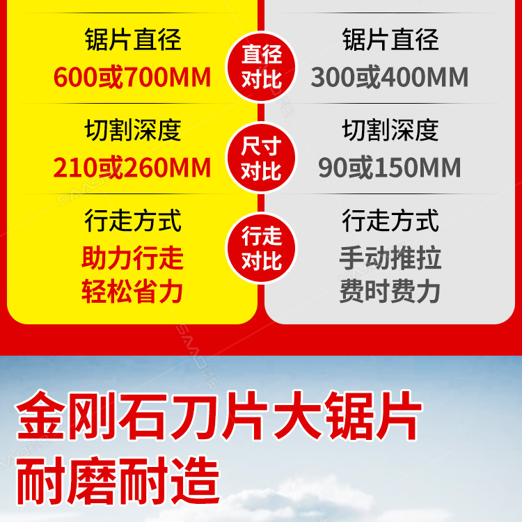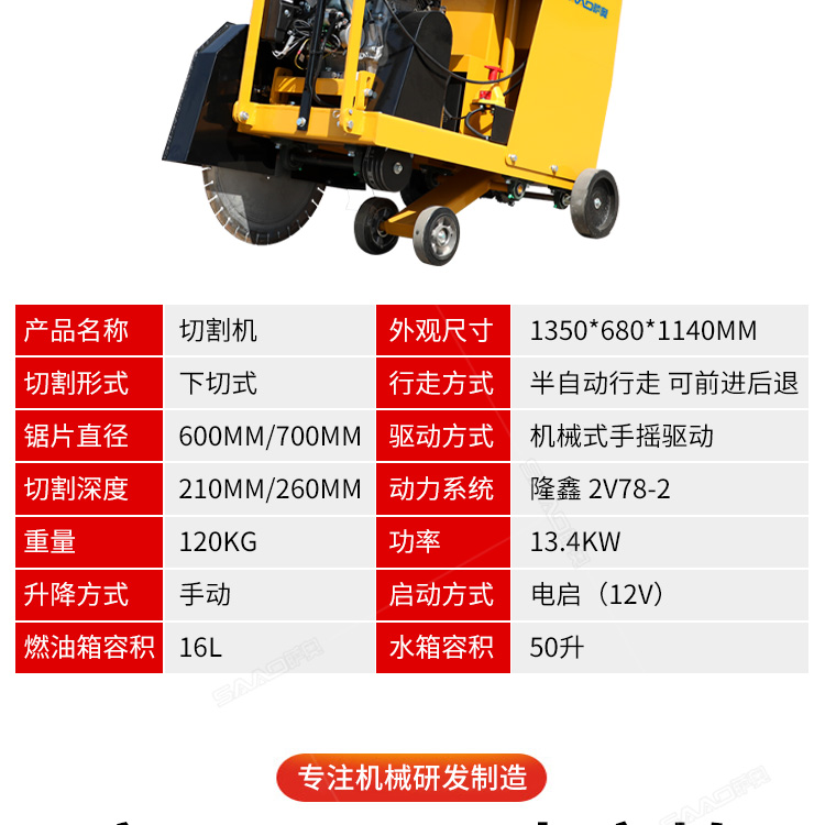 大直径马路切割机用于沥青路面、水泥路面、混凝土制品、石材等的切割作业。
