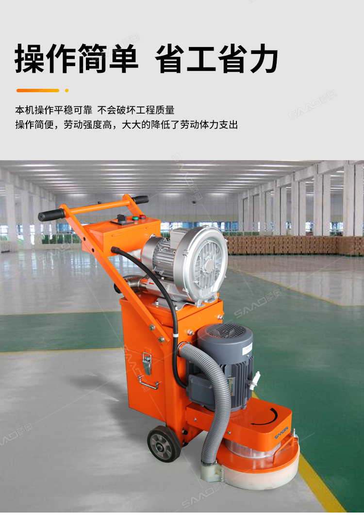 SYM-330手推式无尘地面研磨机,是集研磨和吸尘为一体的先进的路面机器,边打磨边吸尘,为我们提供良好的无尘打磨环境。特别是在地面混凝土强度低的情况,如果配上砂纸磨片,也可以打磨环氧腻子层;同时对环氧腻子层的磨损小,提高环氧地面的平整度。