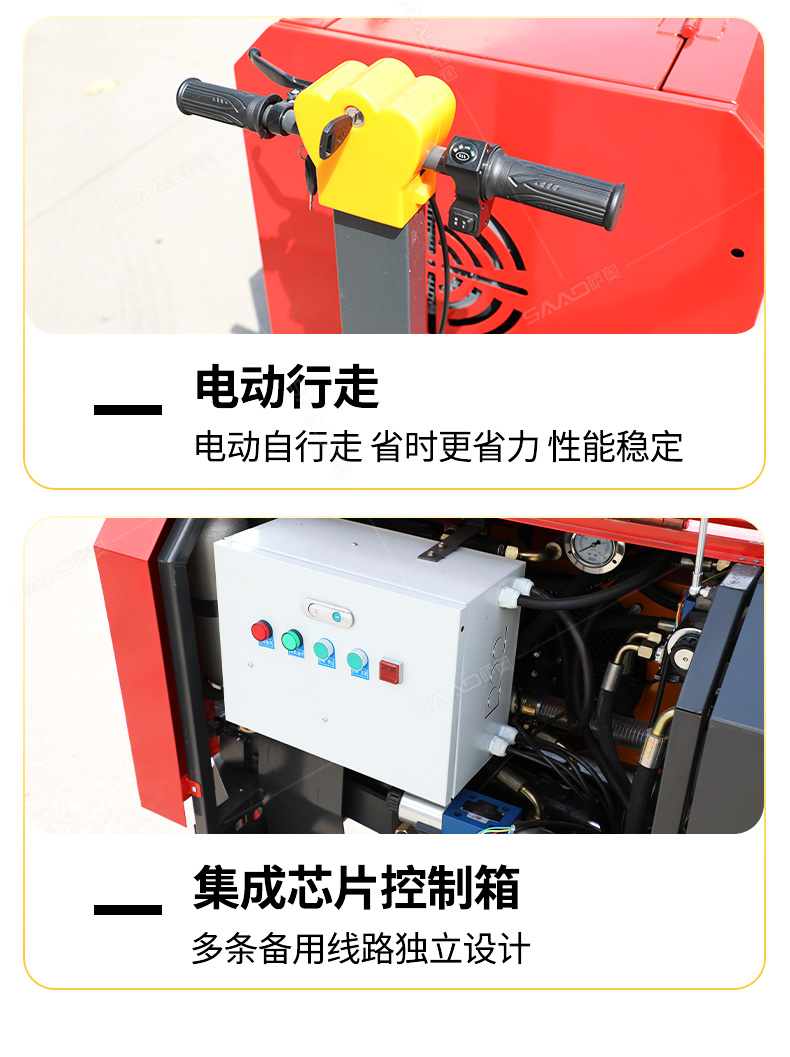 采用手推/电动行走底盘,高速强冷风冷散热系统散热效果更好,液压系统采用国内知名厂商叶片泵,故障率低,寿命更长,性能更稳定。