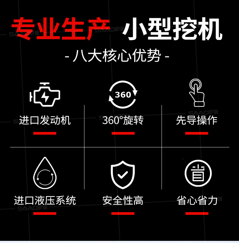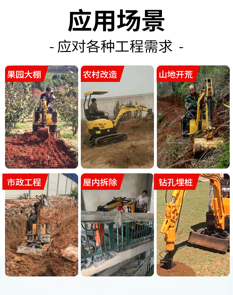 小型挖掘机可选配多种配件-多种辅具自由切换。