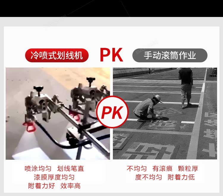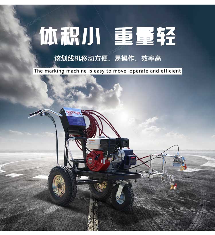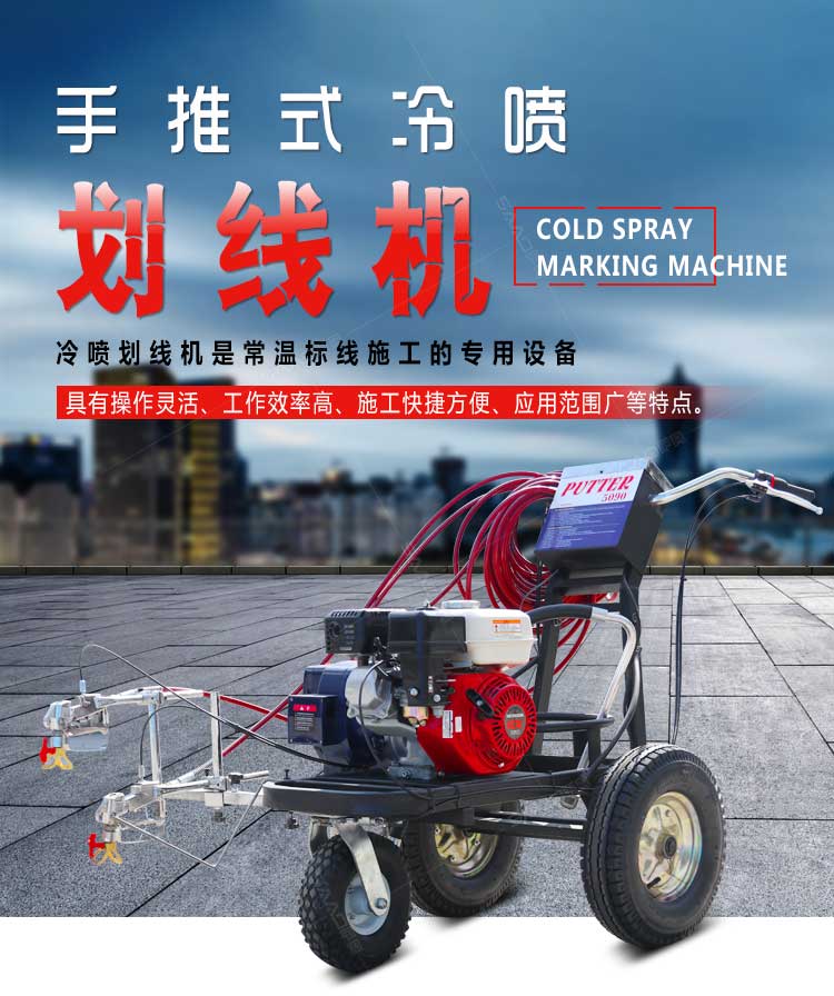 产品介绍: 冷喷划线机是常温标线施工的专用设备,喷出的线型清晰、流畅、饱满、均匀,主要用于公路、停车场、机场、加油站、公司厂区等涂画直线、虚线、曲线、斑马线、文字、