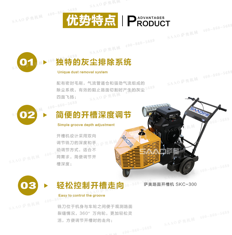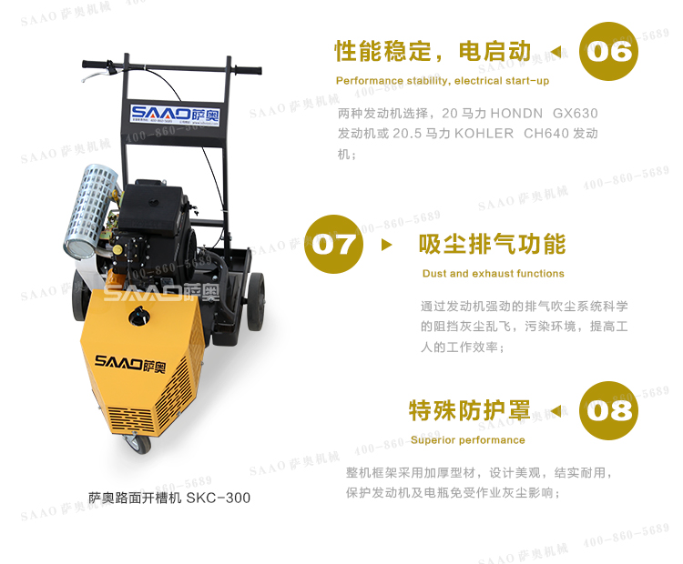 山东萨奥路面开槽机型号齐全,质量保证,全国货到付款,如需了解详细参数及施工视频请致电24小时免费电话:400-860-5689