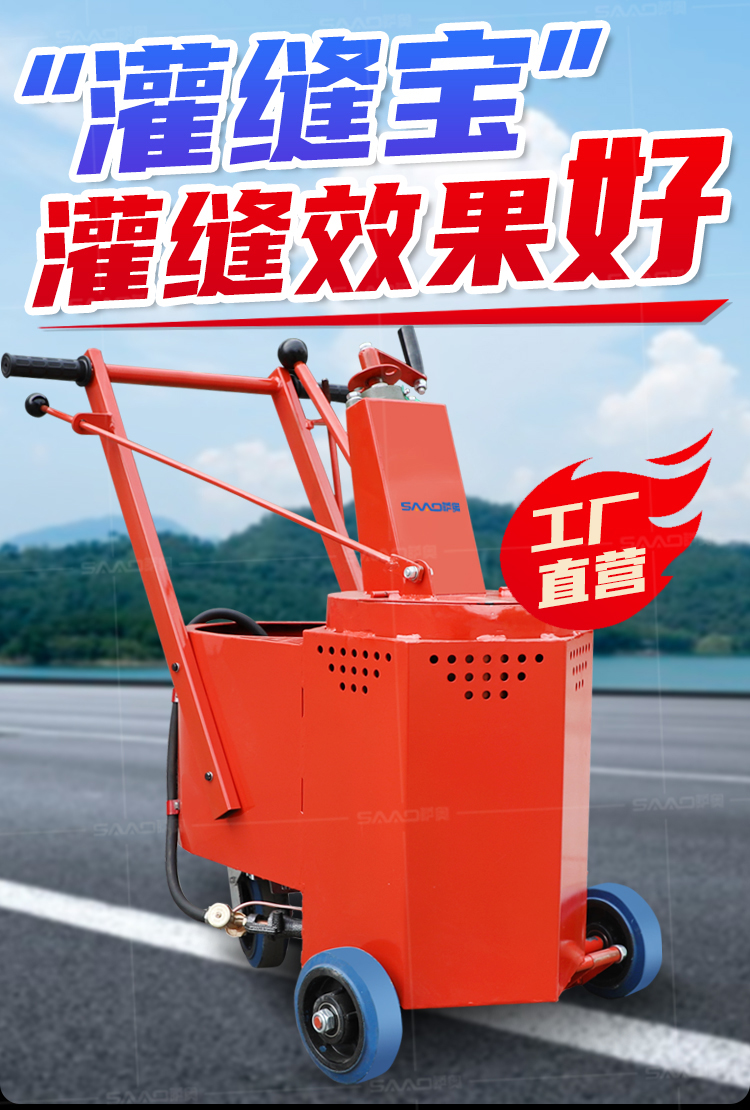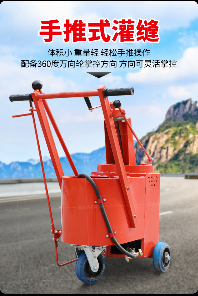 这款灌缝机是小型的手推灌缝机,也叫灌缝宝。主要用于路面裂缝灌缝修补及混凝土收缩缝灌缝填充时辅助灌缝施工。