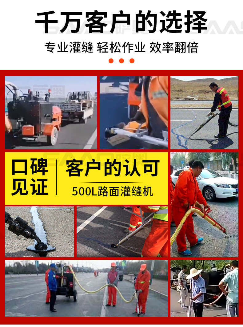 SGF-500路面灌缝机适用于沥青路面或水泥路面裂缝密封灌缝,是中、大型路面裂缝养护工程量施工首选设备。