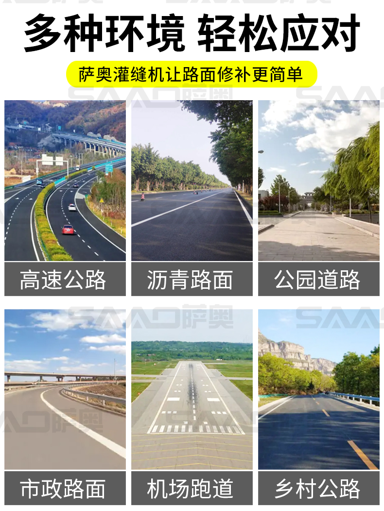 SGF-650系列路面灌缝机适用于沥青路面或水泥路面裂缝密封灌缝 ,是大型路面裂缝养护工程量施工首选设备。