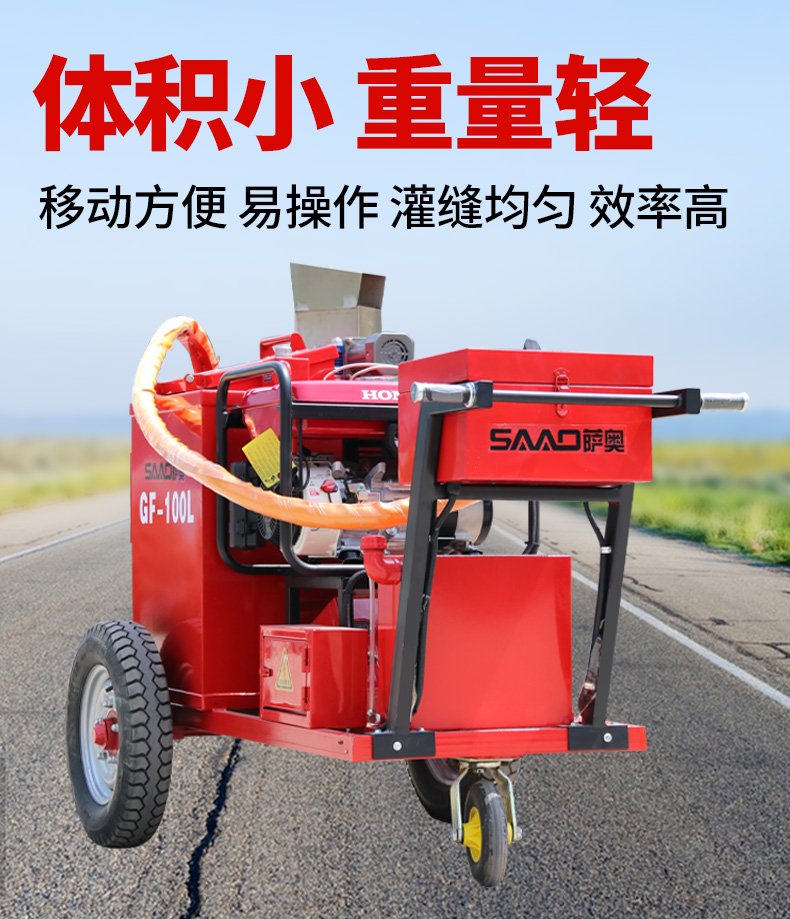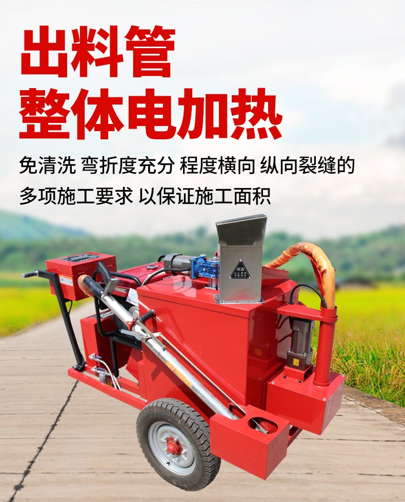 沥青灌缝机100D热熔采用导热油夹套设计,可以加热熔化普通沥青,改性沥青和专用裂缝密封胶,料泵利用压力将熔化材料喷注到清理过的沥青混凝土路面裂缝中进行修补。