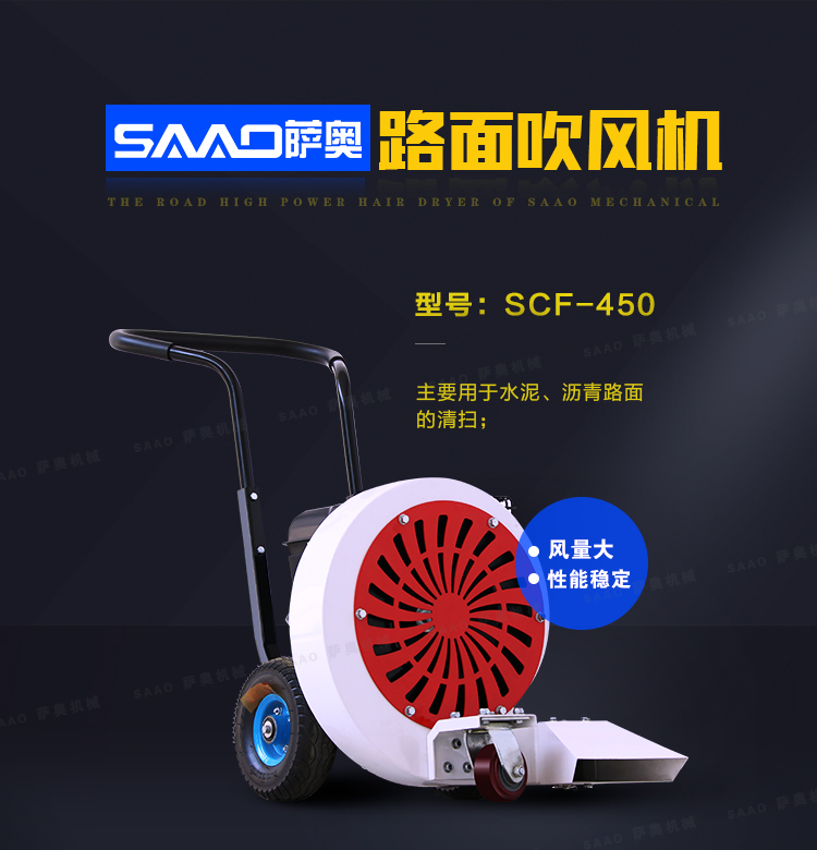 马路吹风机用于水泥、沥青地面路面的清扫,清洁。 产品性能: 名优动力,性能稳定;动力平衡极好的风页,保证整机的稳定性;超大风量,性能优越。