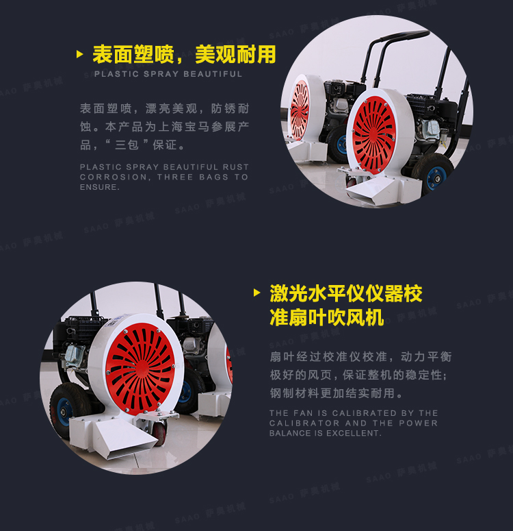 名优动力,性能稳定;动力平衡极好的风页,保证整机的稳定性;超大风量,性能优越。