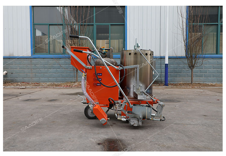 萨奥手推式热熔划线机采用普通铸铁划线斗,同步离合玻璃微珠自动撒播器,结构简单,轻便,划线清晰笔直。