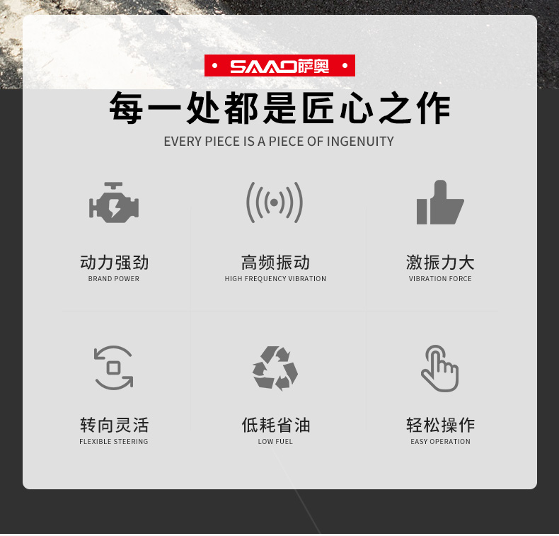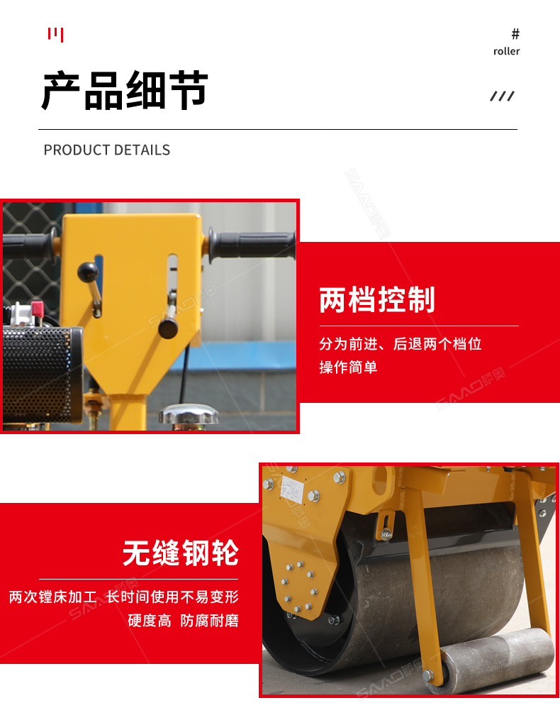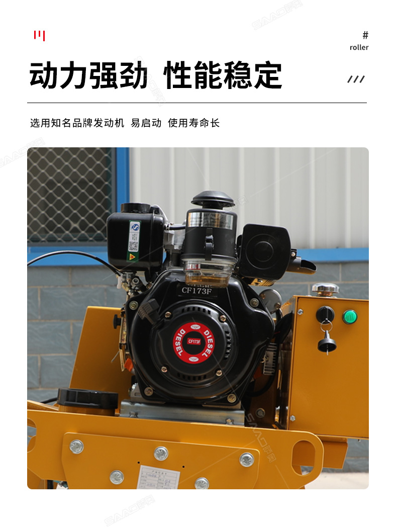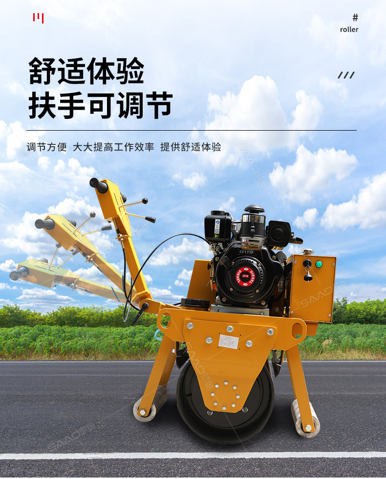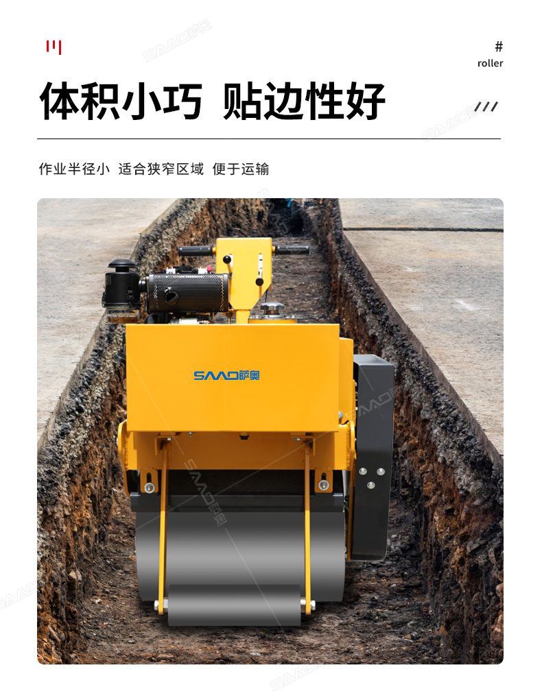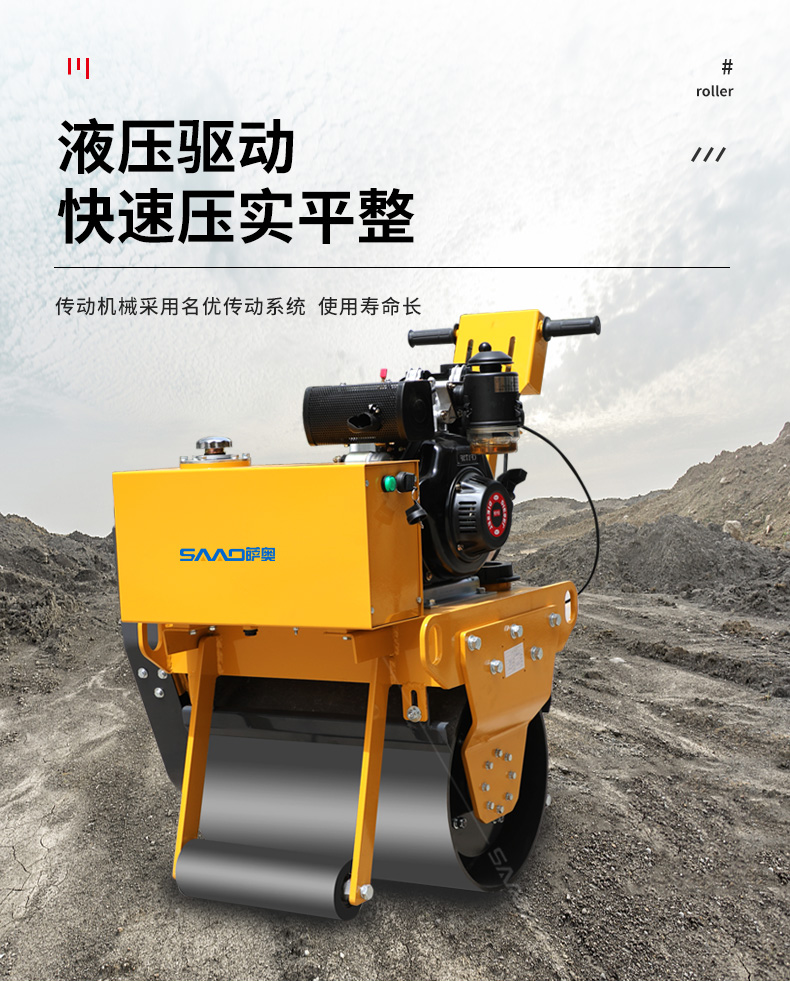 主要用于沟渠基础,道路,体育场地的压实整平,也可用于压实沥青表面的作业。