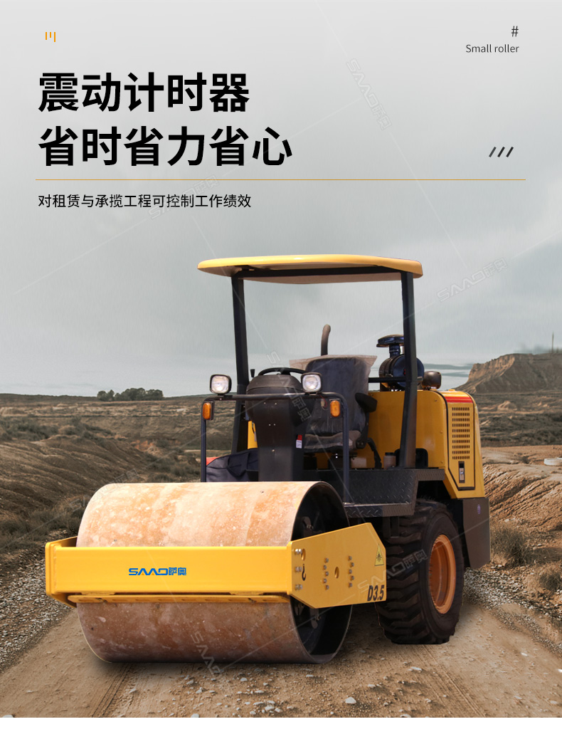 3.5吨单钢轮振动压路机适用于各种沟槽沙土回填压实、高层建筑地下室土方压实、小区道路基础压实、各种草坪压实、修修补补及各种小型工程的使用,解决了其他工程机械不能完成的