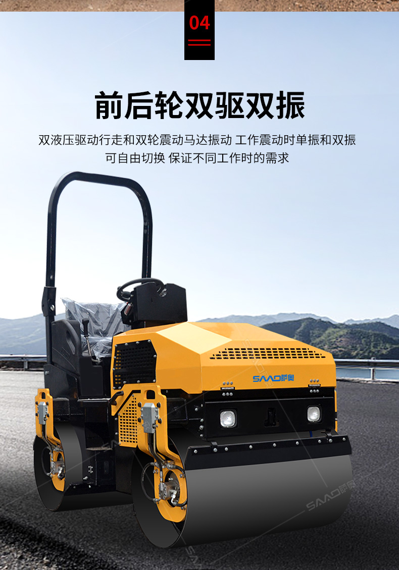 3吨全液压双钢轮振动压路机压回填土专用的压路机,水冷柴油发动机 进口变量柱塞泵 进口柱塞马达,液压双驱 进口液压马达驱动,单振和双振可以自由切换