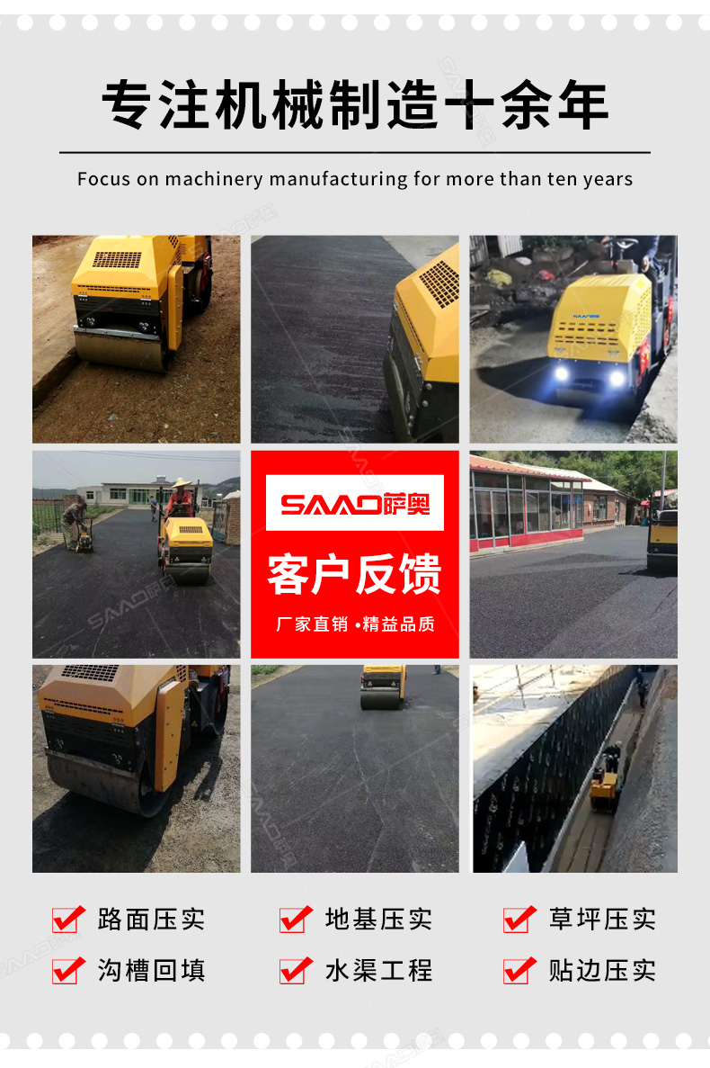 正在加载播放器... 我厂专业生产小型压路机12年,最新液压系统手扶单轮压路机,手扶双轮压路机,1吨压路机,2吨压路机,3吨压路机如需了解请致电24小时免费电话:400-860-5689