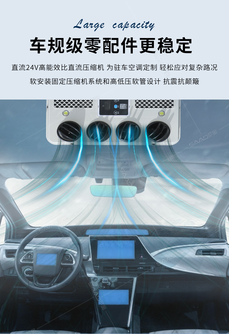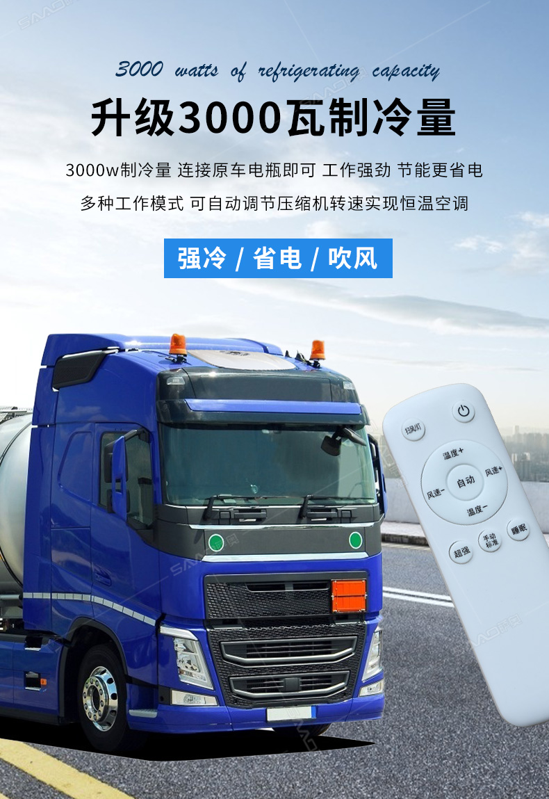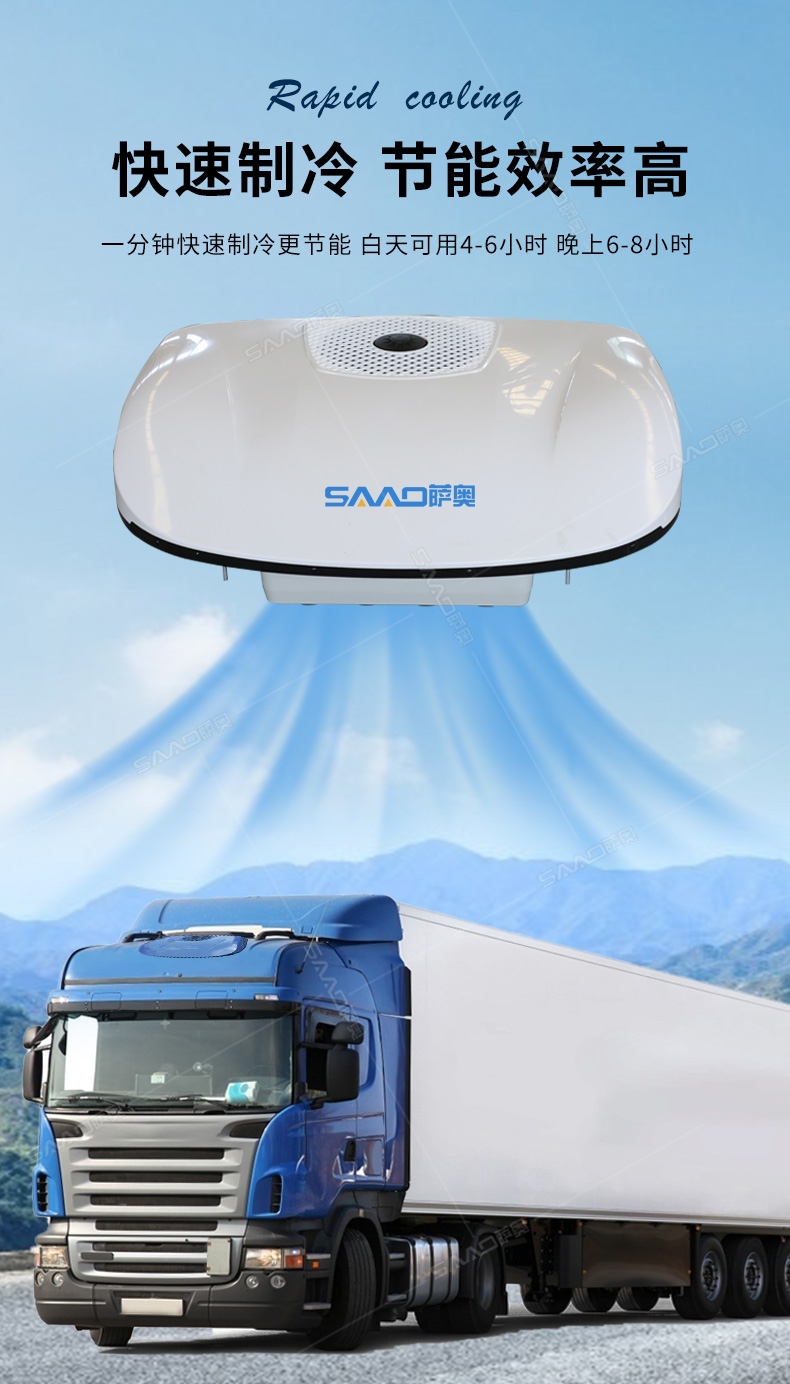 SA-D8000车载顶置驻车空调主要用于卡车、货车等大车的制冷。一分钟快速制冷高效节能,白天可用4-6小时晚上6-8小时。