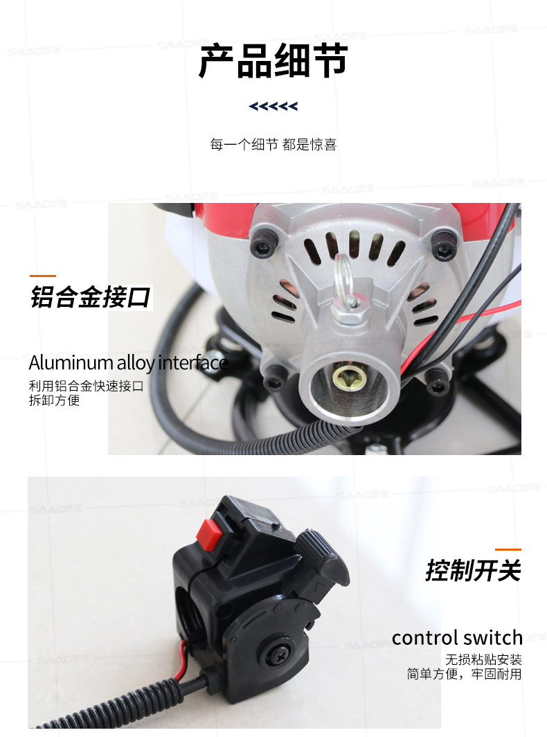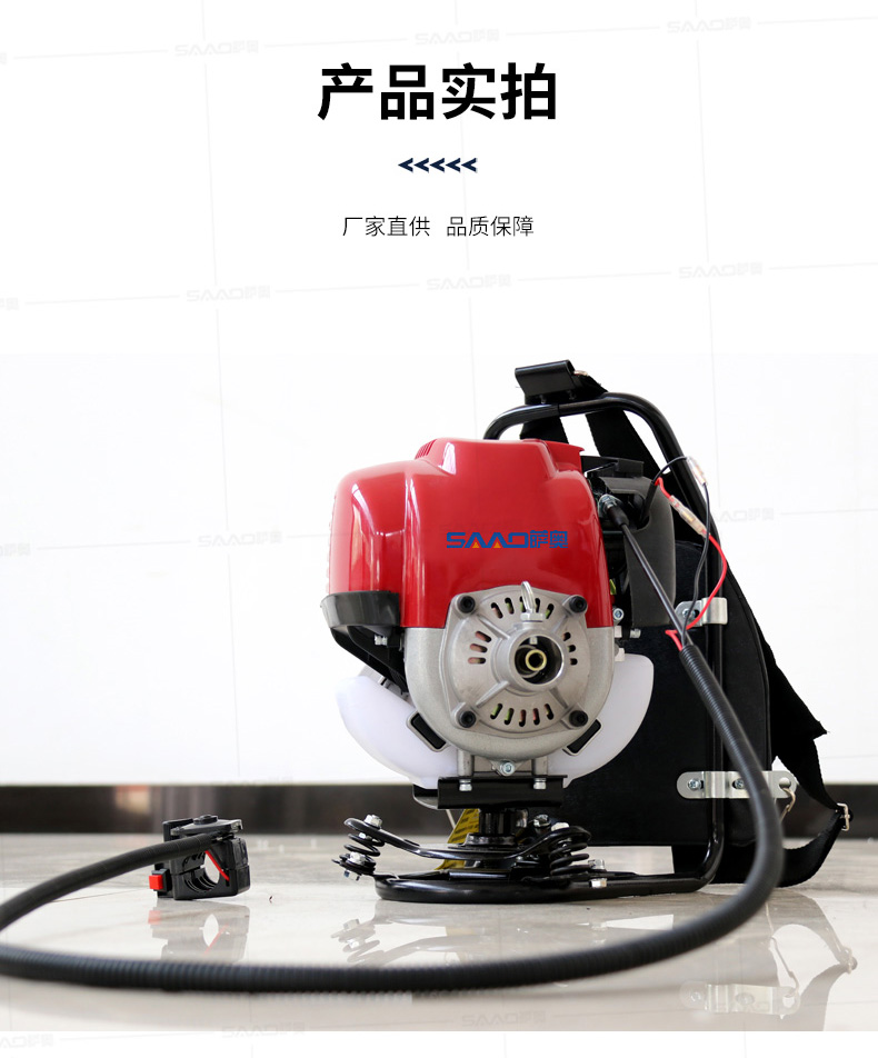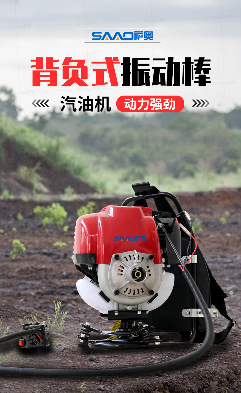 萨奥牌混凝土背负式汽油机振动棒是采用优质汽油机为动力直接驱动,是广泛适用于道路、桥梁、隧道、楼层基础和各种混凝土梁、柱及预制构件现场浇注施工的重要工具,是偏远无电