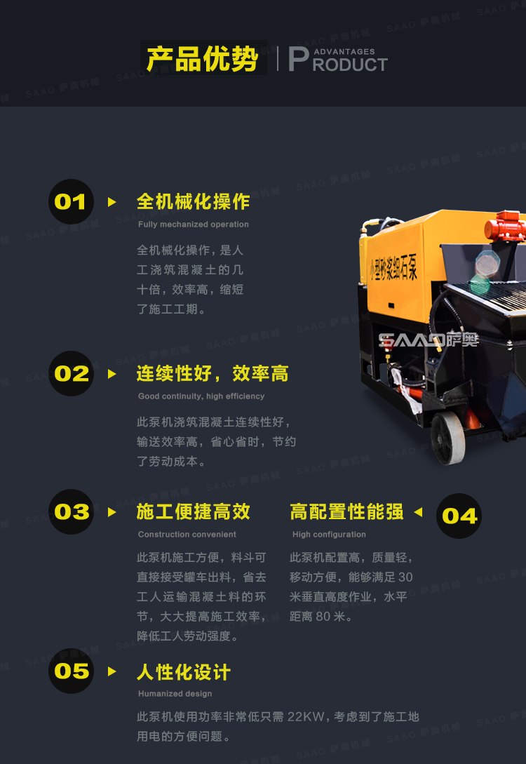 二次构造柱泵特点就是体积小,质量轻,配置高,性能稳定,使用灵活方便,而且泵送距离远,泵送混凝土至良好!是您室内二次结构浇筑混凝土的选择设备!