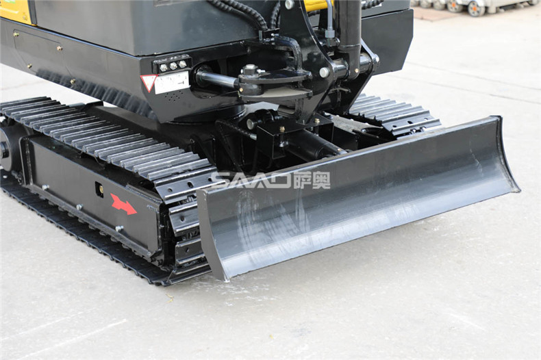 4、行走部分加装两个托链轮,减少了橡胶履带的磨损,降低了摩擦的噪音,提高了橡胶履带的使用寿命。