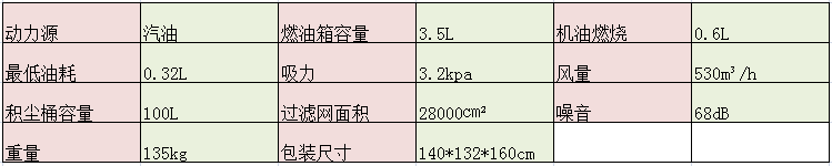 2.动力源:汽油发动机带动风叶仓,吸力大小可调,依靠燃烧汽油产生动力,加一次油可以连续工作2-3小时,动力强劲。