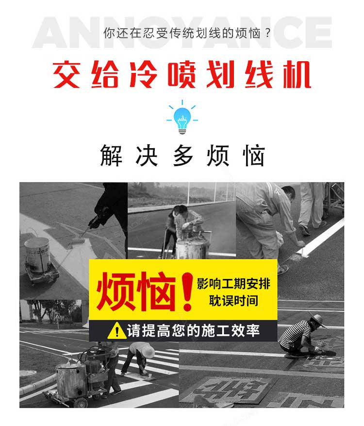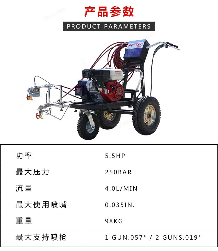 产品介绍: 冷喷划线机是常温标线施工的专用设备,喷出的线型清晰、流畅、饱满、均匀,主要用于公路、停车场、机场、加油站、公司厂区等涂画直线、虚线、曲线、斑马线、文字、