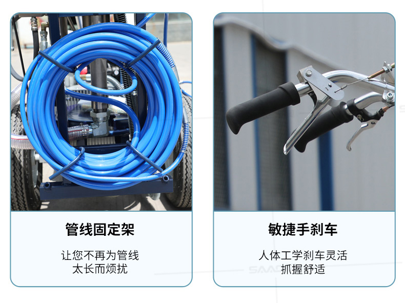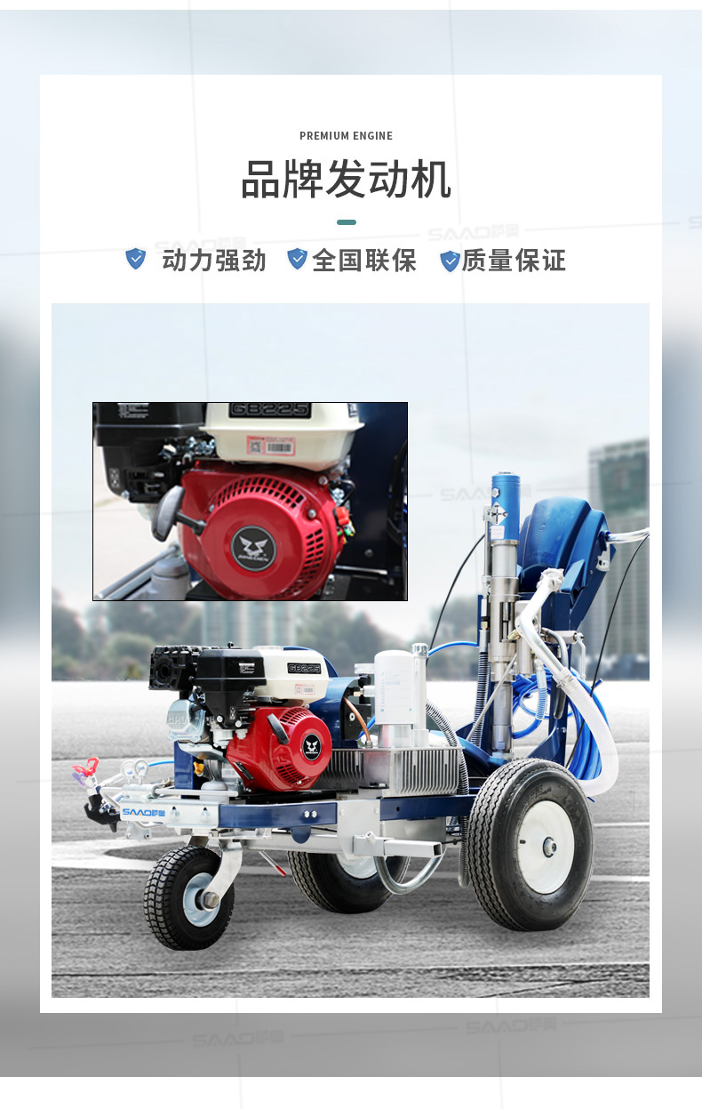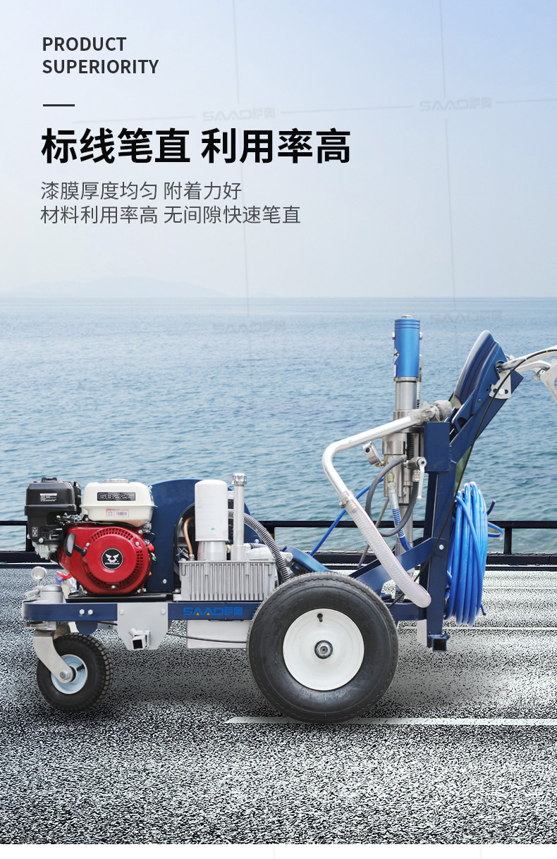 主要用于公路、市区、停车场、机场等涂划直线、虚线、曲线、文字、箭头等。具有划线效果好、速度快、效率高、适用范围广、使用方便等优点。