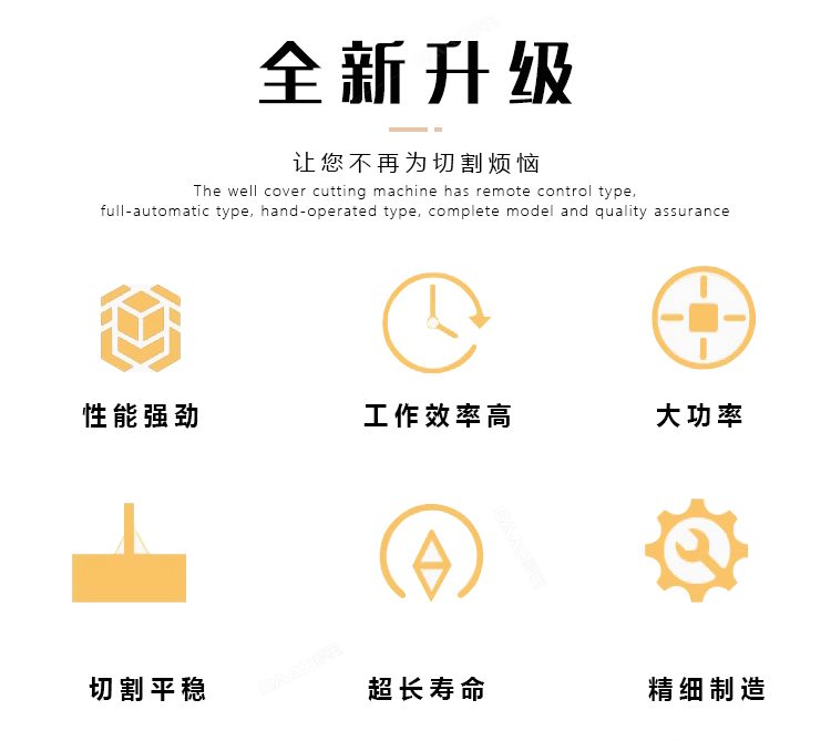 我厂生产路面机械12年,井盖切割机有遥控式,全自动式,手摇式,型号齐全,质量保证!全国发货!货到付款!如需了解请致电24小时免费电话:400-860-5689