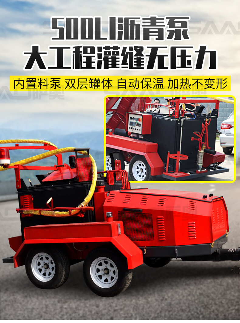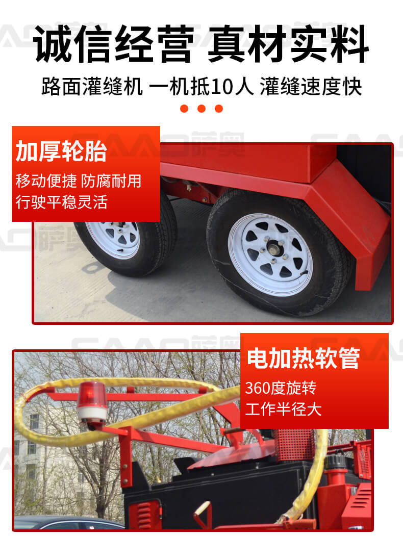 SGF-500路面灌缝机适用于沥青路面或水泥路面裂缝密封灌缝,是中、大型路面裂缝养护工程量施工首选设备。