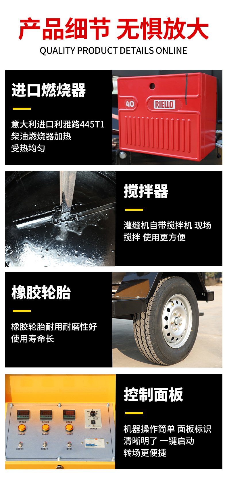 沥青灌缝机100D热熔采用导热油夹套设计,可以加热熔化普通沥青,改性沥青和专用裂缝密封胶,料泵利用压力将熔化材料喷注到清理过的沥青混凝土路面裂缝中进行修补。