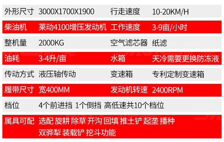履带旋耕机本机能完成耕、耙作业,具有碎土能力强、耕后地表平坦等特点。