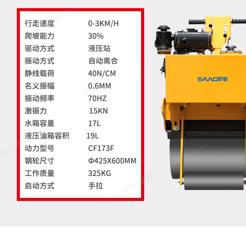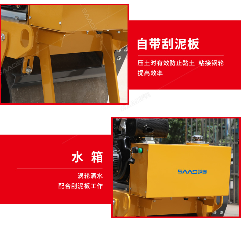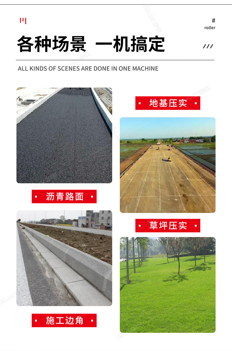 主要用于沟渠基础,道路,体育场地的压实整平,也可用于压实沥青表面的作业。