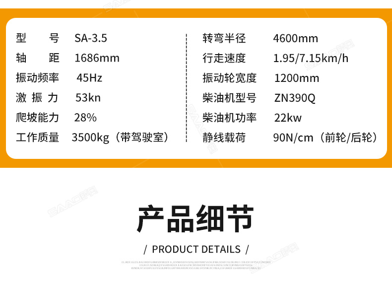 3.5吨单钢轮振动压路机适用于各种沟槽沙土回填压实、高层建筑地下室土方压实、小区道路基础压实、各种草坪压实、修修补补及各种小型工程的使用,解决了其他工程机械不能完成的